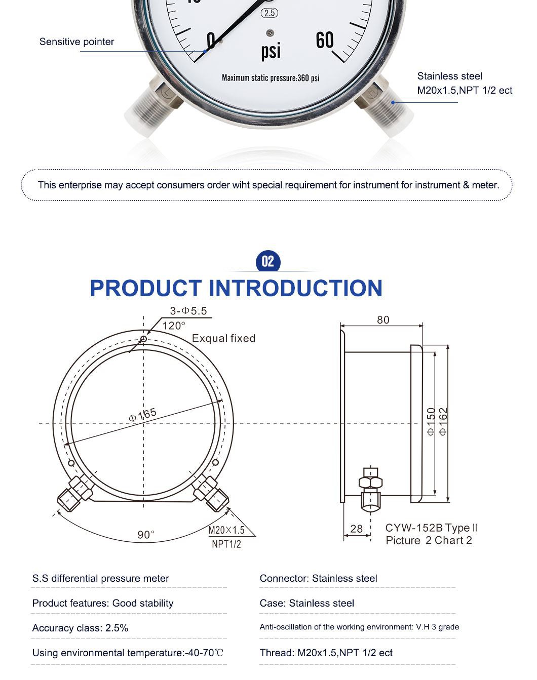 CYW-150Bステンレス鋼差圧計(略してメーターと呼びます)